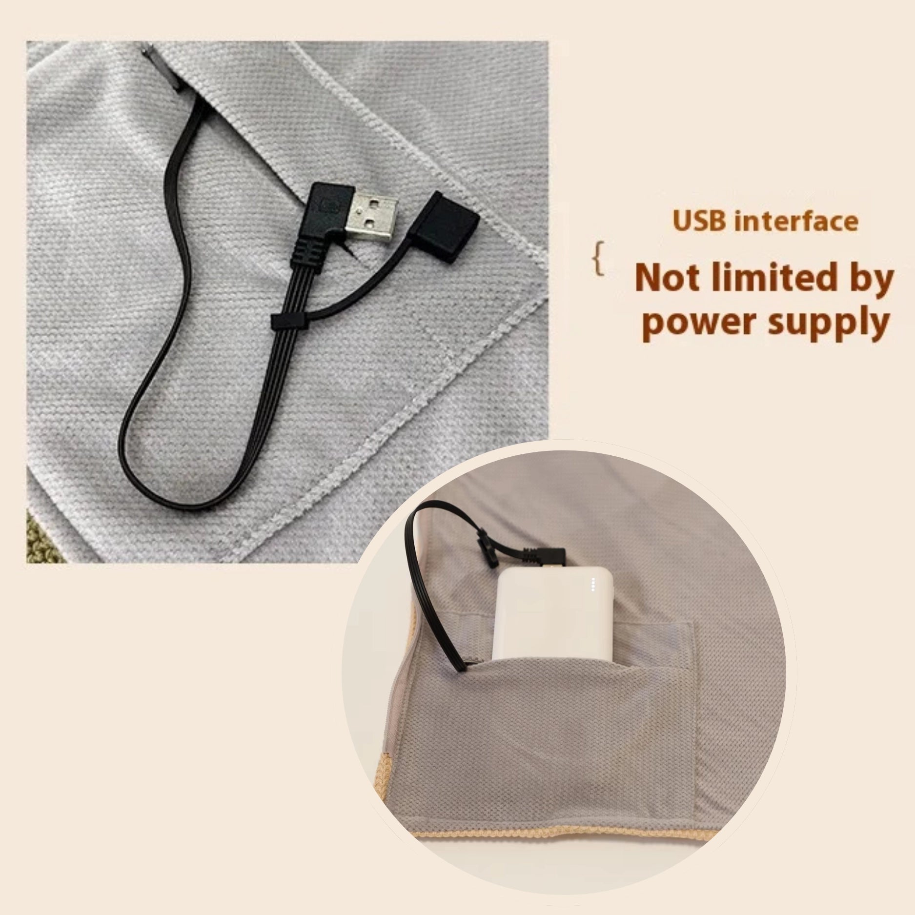 USB電源部を取り外して洗濯機で洗うことができます。