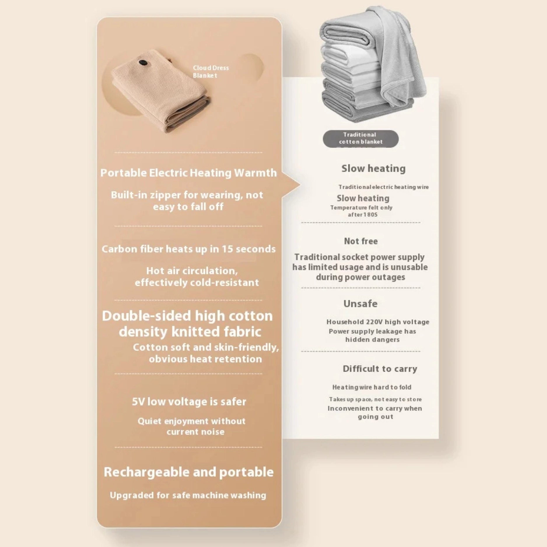 雲暖ブランケットは、USB給電で15秒以内にふんわり温まるポータブル電気ブランケットです。二重コットンニットとワッフルフリースが身体を包み、在宅ワークや通勤中にも自然なぬくもりをキープ。低電圧設計で安心して使えると高評価を得ています。選ばれる理由は、見た目も心地よさも大切にした冬の新定番だからです。