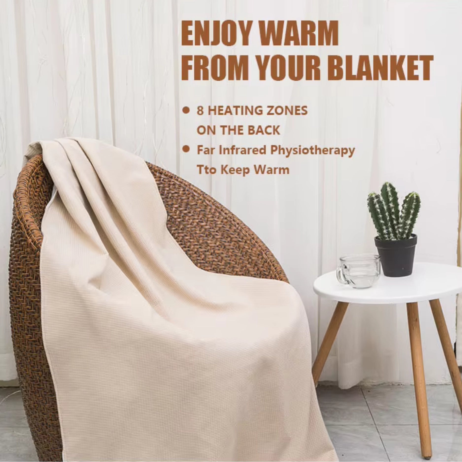 コードレス 電気加熱ブランケット(洗濯可能 ソフトフリース ショール USB電源)