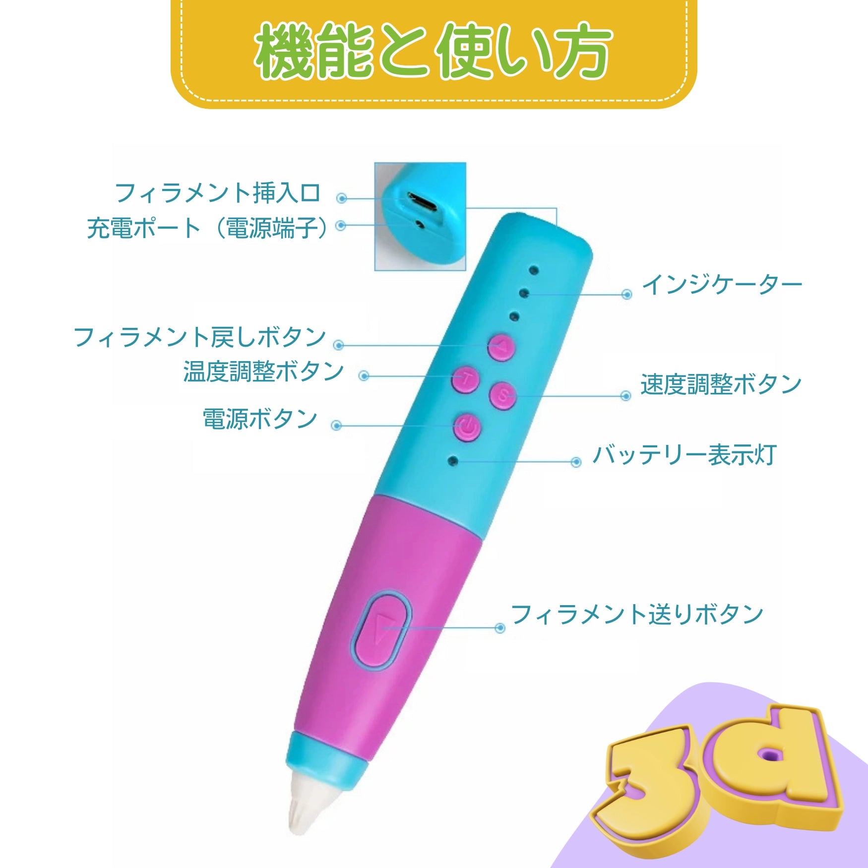 クリエイティブ 3D ペンは、40-50℃の低温設計。