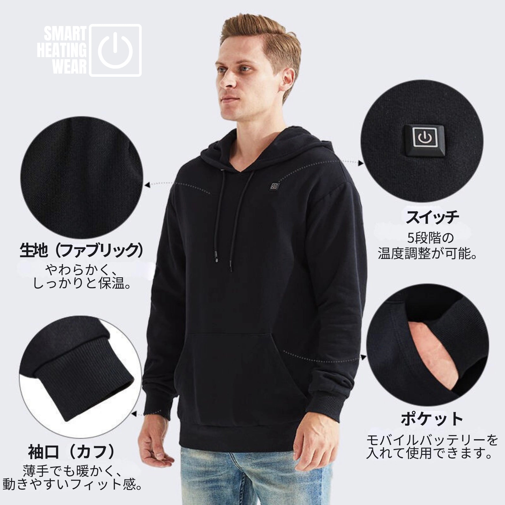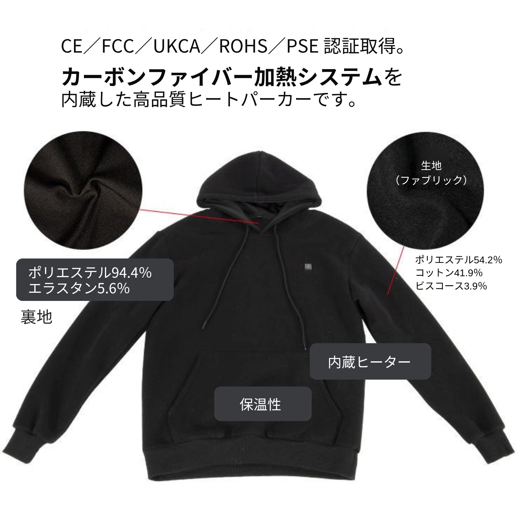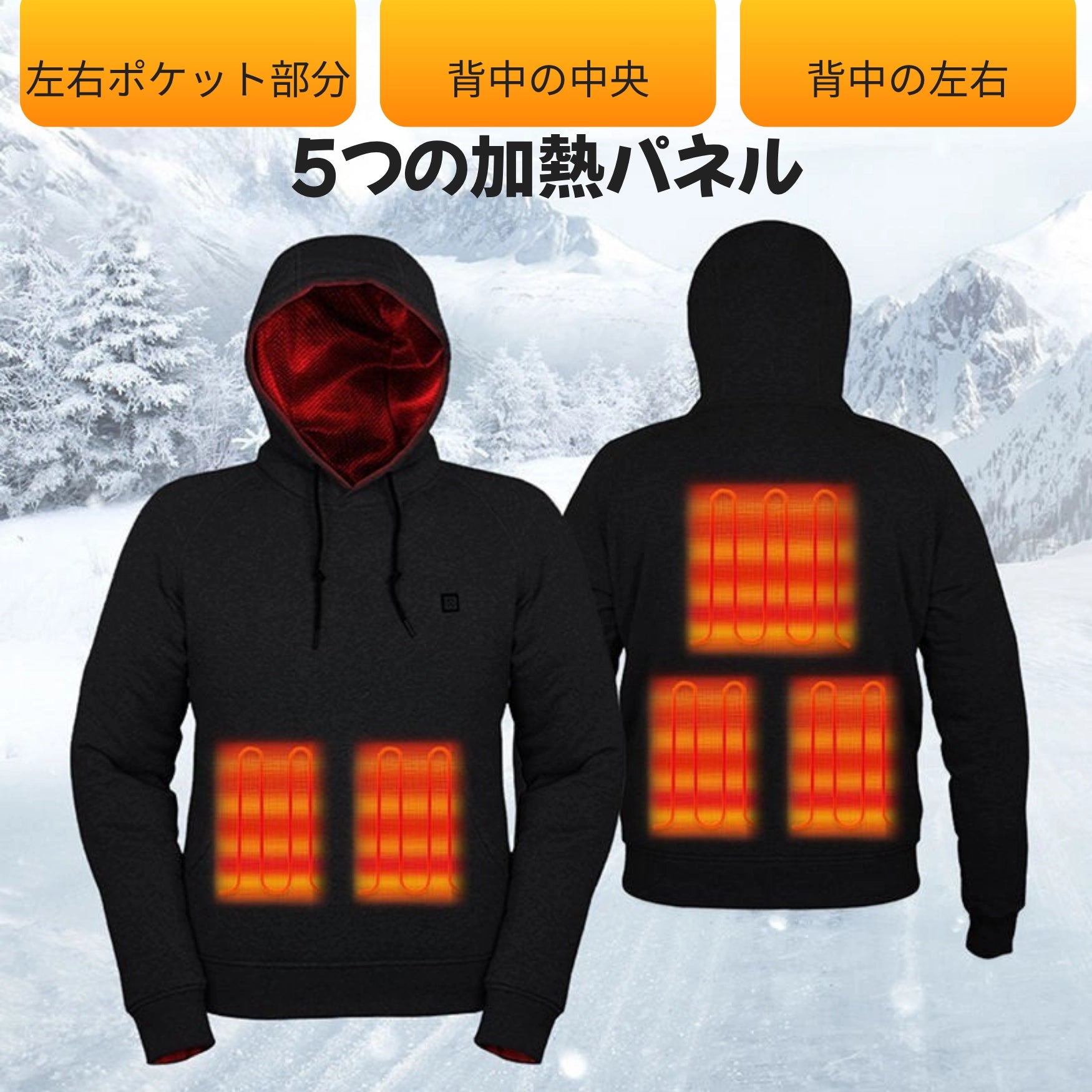 加熱エリア: 5箇所(左右ポケット・背中中央・背中左右)